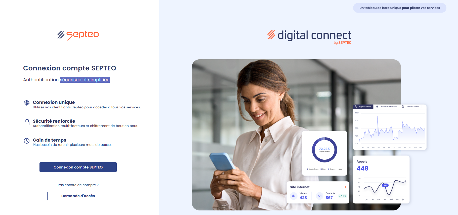 L’accès à Digital Connect se fait via votre compte SEPTEO, garantissant une authentification sécurisée et simplifiée.
