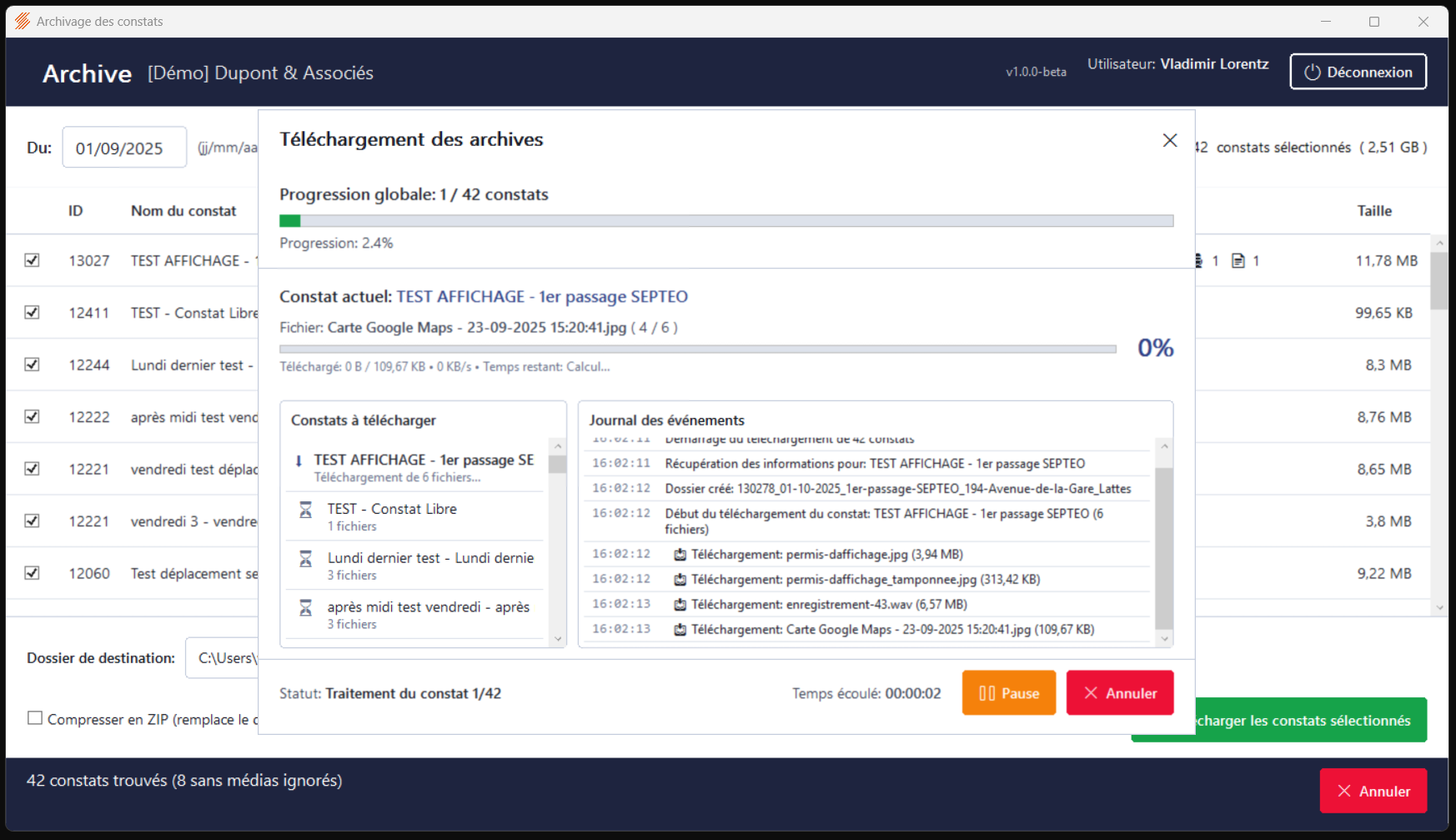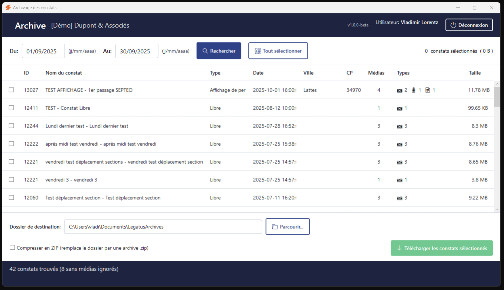 - Cliquez sur "Télécharger les constats sélectionnés"