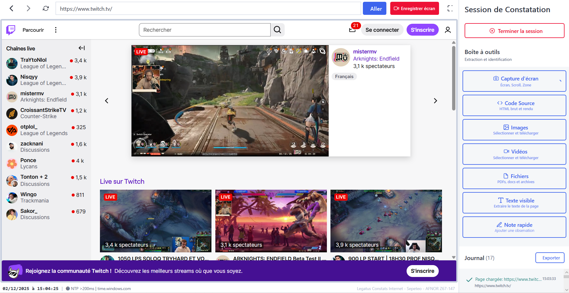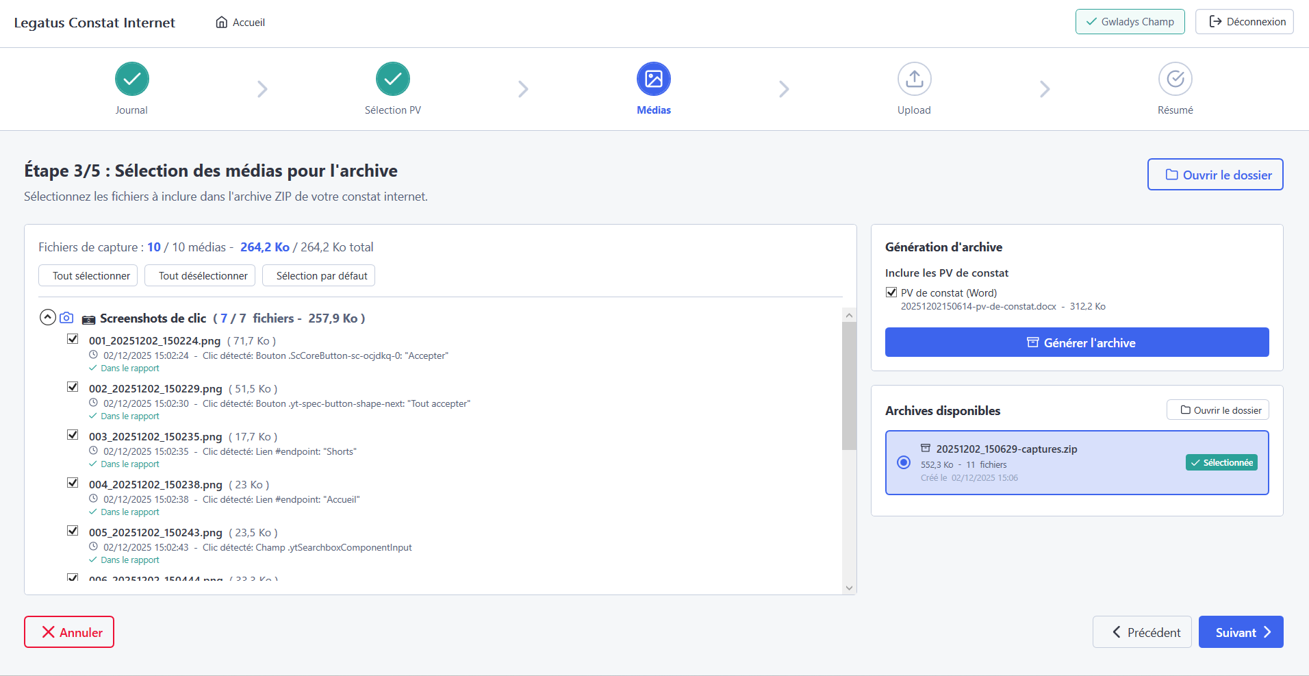 Chaque manipulation effectuée dans le navigateur est enregistrée afin d’assurer la transparence et la valeur probante du constat.
